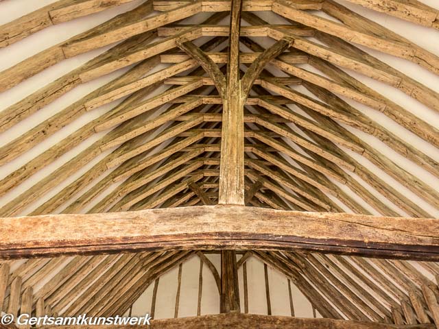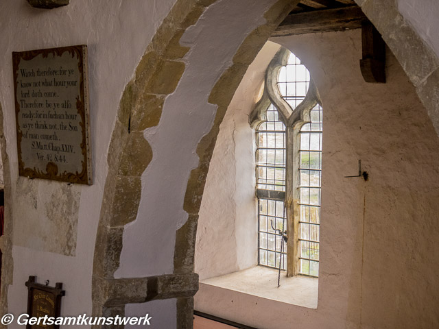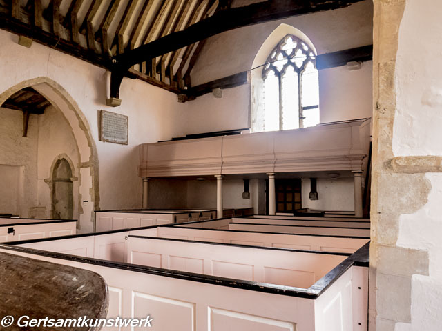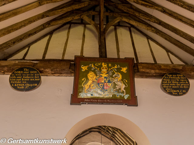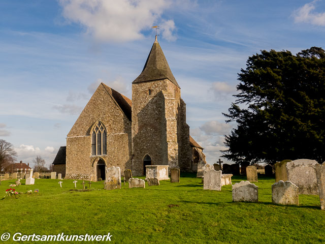It was built in the 12th century and restored in the 18th century, when the original timber building was encased in brick. Much of the original timber work can be seen inside the church, which also contains a seven-sided font and triple-decker pulpit.