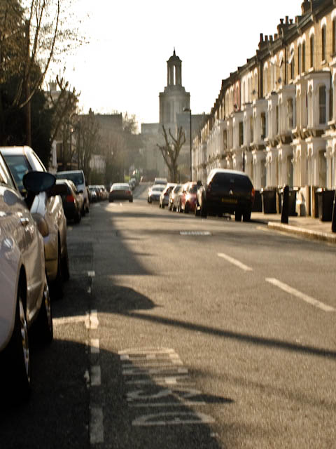 The walk took us along Railton Road. I think this was taken along Kellett road, a distant view of St Matthew's shimmering in the haze.