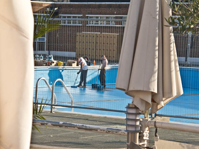 While we were there, the actual pool was being pained in readiness of its re-opening (on 20 April). I worried that these chaps would end up surrounding themselves with wet paint and become trapped. The didn't.