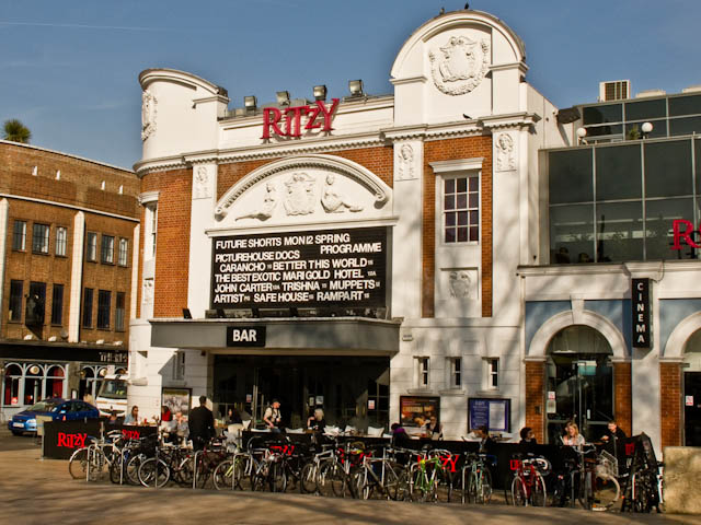 We then walked to the right, past the Ritzy Cinema, where, nowadays, the Trendies & Yummies congregate for coffee. I suppose if you're walking through the market, this is probably as safe a place as any to park your bike. I don't suppose many are taken from here.