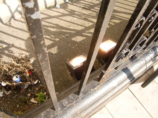 We got off the bus outside the Town Hall and crossed over to inspect the Tate Library. What we mainly noticed was the shocking waste of having ground-lights on full beam in glorious sunshine. Frustrating when you know that Lambeth, like all authorities, is having to cut back vital services.