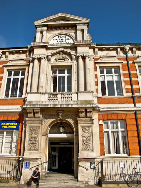 The walk starts at Tate Library, named after Henry Tate, who philanthropically donated towards the founding of this of and several other libraries, and an Art Gallery. The Lambeth leaflet describes him as Tate of Tate & Lyle, who invented the Sugar Cube. But Wikipedia says Henry Tate & sons only merged with Abram Lyle & Sons two decades after his death, and he only bought the patent for sugar cubes from a German concern.