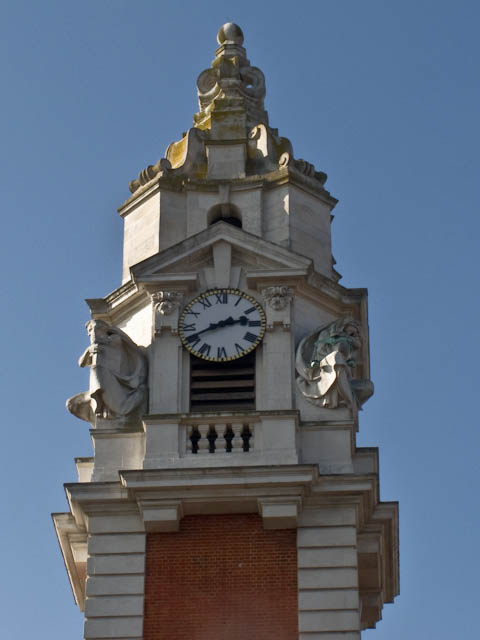 We looked to the left to capture Lambeth Town Hall, venue of perhaps far too many evenings of my life. Four figures represent Justice, Science, Art, and Literature. Your guess will be as good as mine as to which we can see in this photo.