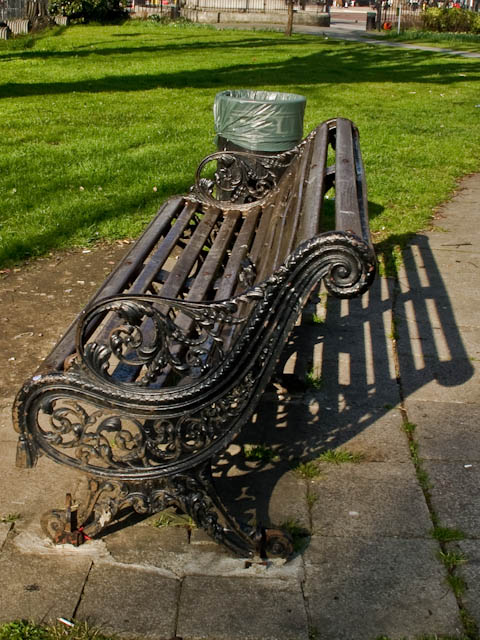 For a long time, the so-called Peace Garden was dominated by drinkers, druggies and other down-and-outs. It seemed almost bereft when we wandered through. It's nice to have an open space so close to a town centre; it's not something you often see in towns, whether they're part of big cities or stand-alone in rural surrounds. My eye was caught by an appealing park-bench, and the strong shadow it cast.