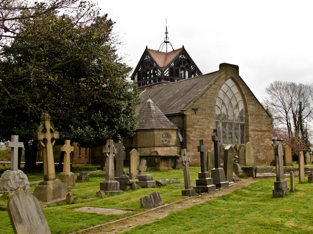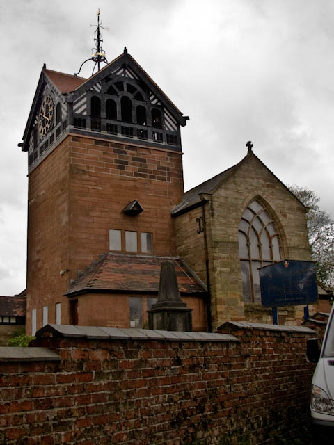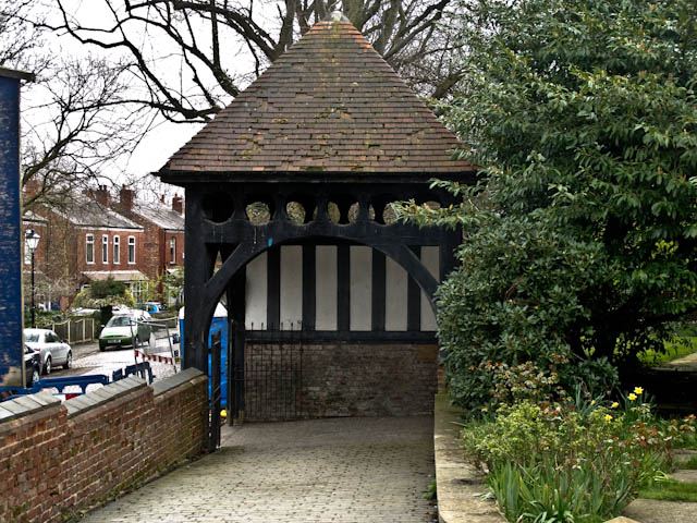 A new church was built ten years later, perhaps reflecting its relative unimportance in comparison to other post-storm re-building. Some of the beams from the current church are thought to have been in the original church. Unsurprising, considering that it was a storm, not a fire, and new materials would have been at a premium. The tower and the lychgate were added in 1887, at about the same time that Sale was embracing Methodism. The church is Grade II* listed, the lychgate Grade II.