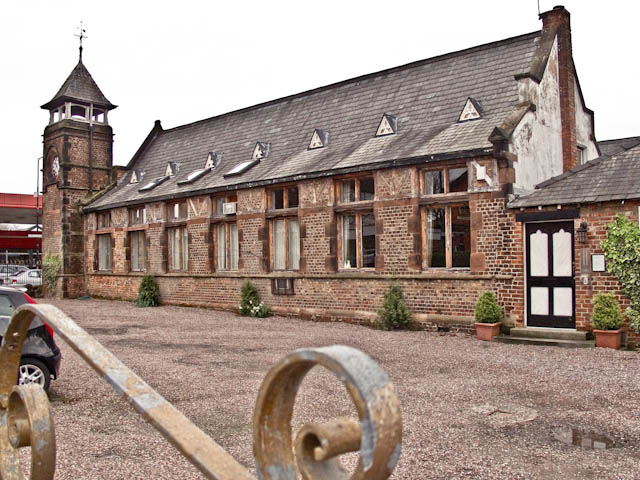 I'm not sure what this building is, but it looks as if it was once agricultural buildings, now converted to desirable suburban residences, literally a stone's throw from the golf club and riding school.