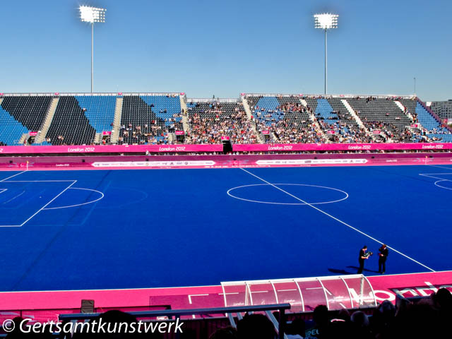 Access to the stadium was straightforward, pleasantly handled by a chap from the RAF. We were made to throw away the water in our (Olympic branded) water bottles, but even that wasn't a problem - plenty of places to get free drinking water and short or non-existent queues. It was a hot day and we did a lot of walking; water was much needed!