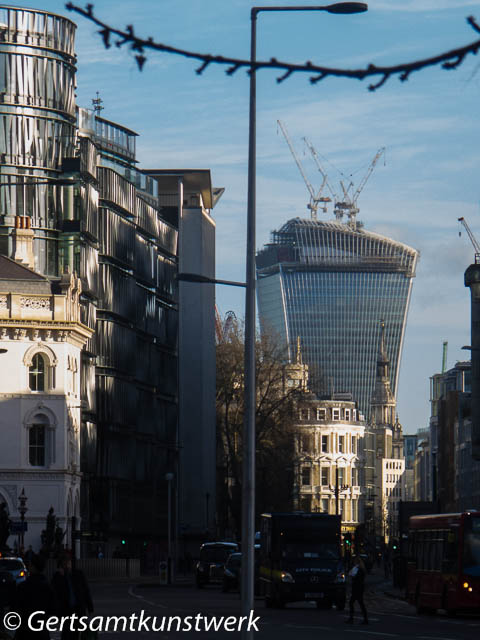 I took a picture of the 'Walkie Talkie' building, repeating a mistake I make often of concentrating on new sites that will be there for years and not capturing the old before they are demolished. This is the building with the reputation for melting bicycles and Jaguar cars.