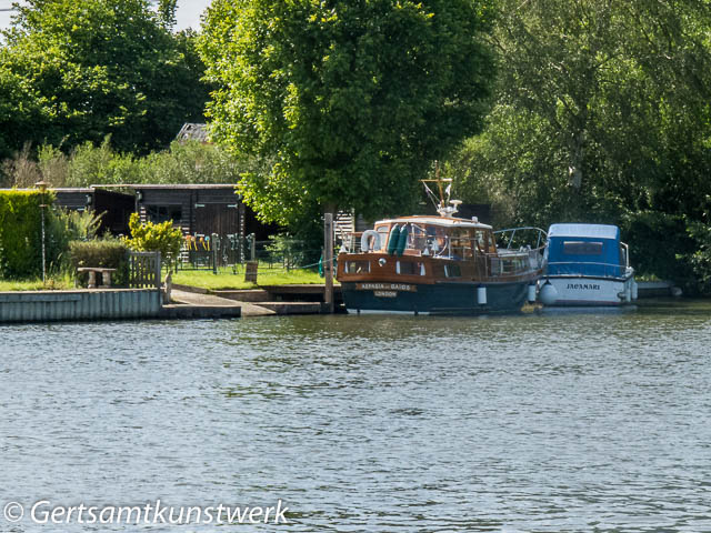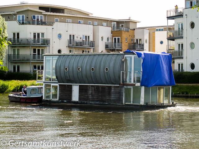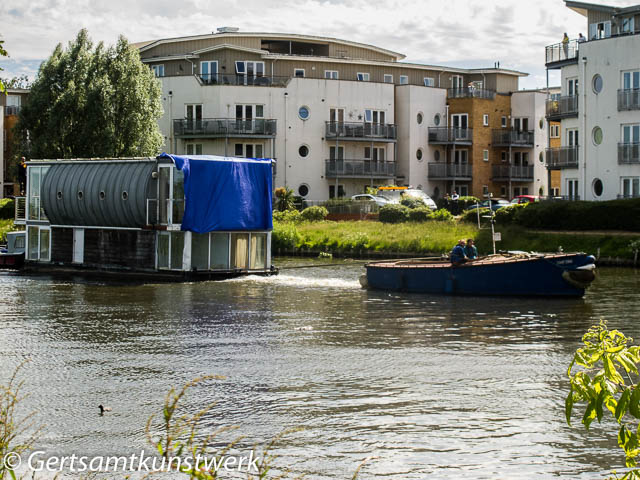 As we crossed the bridge we spotted an unusual site - a houseboat being towed. I have to confess to not having previously considered how houseboats reach their moorings, now I know.