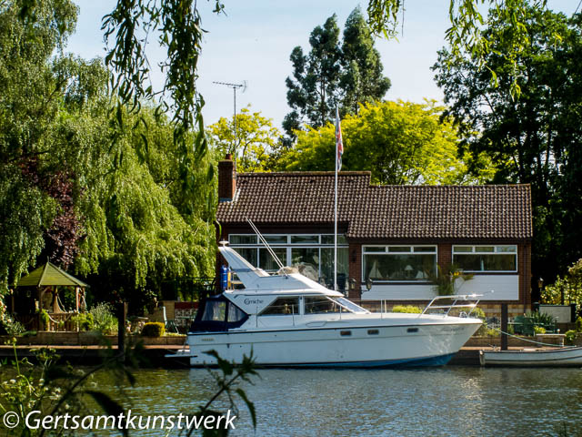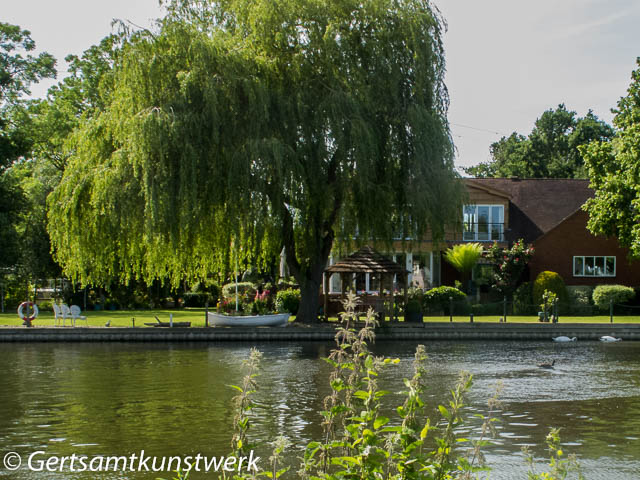 As we walked along the towpath, on our left were houses that had obviously been affected by the serious floods of Winter 2013/14, and across the water to our right lay Pharoah's Island, again where the houses showed signs of flood damage. As an incurable romantic I loved the idea of being dependent upon a rowing boat to go anywhere or even to pick up one's post from a mailbox on the mainland. I didn't know the sad story that had happened three years previously Music executive among two feared dead after Thames boat capsizes