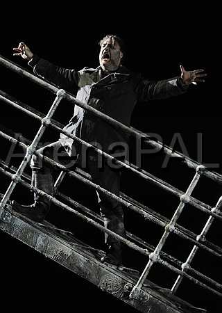 And the final scene. Almost an anti-climax after Scene 4, although culminating in a very spectacular death-scene, exemplifying the fine art of tenorial rolling on the ground by its finest exponent, rolling onto the helix-ash tree and rolling off again, and rolling across the stage. Makes it looks so easy! An hour and a half has passed so quickly and I'm wrung out! There had been other instances of tenorial rolling on the ground. (And, for the record, chest hair was also visible), but I can't quite recall sufficiently well to catalogue here.