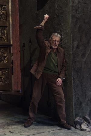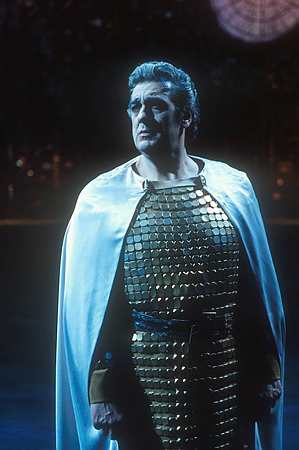 I am conscious in theory of his age, but this simply isn't something that comes across on stage. Or hardly. I did notice that he climbed up onto the altar gingerly, but then so would I, and would have done at twenty or whatever. I did also notice that sometimes he seemed to be pacing around stage a bit unevenly. Not quite limping, but it was something that I noticed in Die Walküre at Covent Garden just over a year ago; perhaps a lack of flexibility in the right knee. There again, he spends so much time on the floor, I don't think that it's particular an age thing. I do have to say that in the fight scenes he did look a teensy bit like he wasn't trying. I don't mean that in a bad way, but he wasn't launching himself into armed combat in a Simon Keenlyside-esque way.